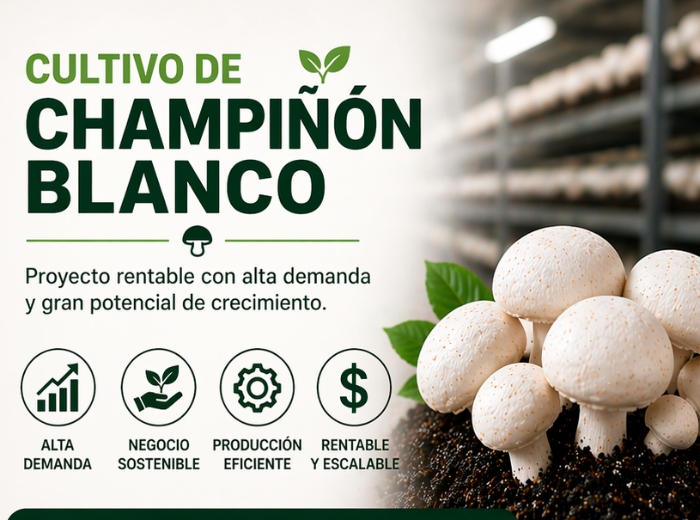 Proyecto enfocado en el cultivo de champiñón blanco, orientado a abastecer un mercado con demanda constante en el sector gastronómico y comercial. La iniciativa surge como respuesta a la creciente necesidad de productos frescos, de alta rotación y consumo frecuente.