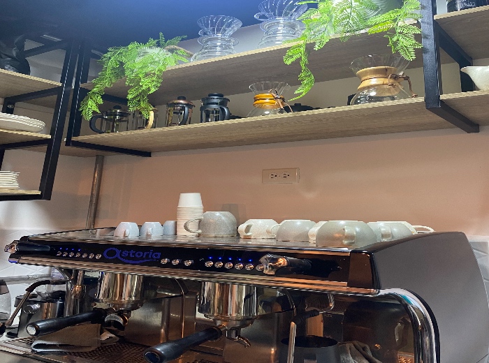 Se ofrece el lugar con todos los elementos que tiene actualmente: máquina de espresso de dos grupos, molino de trabajo especializado, molino pequeño para métodos, horno marca Unox, licuadora profesional, vitrina, elementos mobiliarios e insumos de cocina.