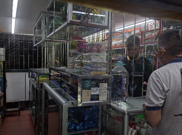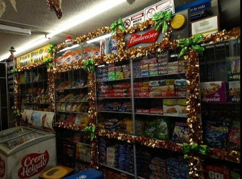 Zona de atencion: mostrador con reja, vitrinas, estanterias y 6 neveras (2 grande y 4 estandar).