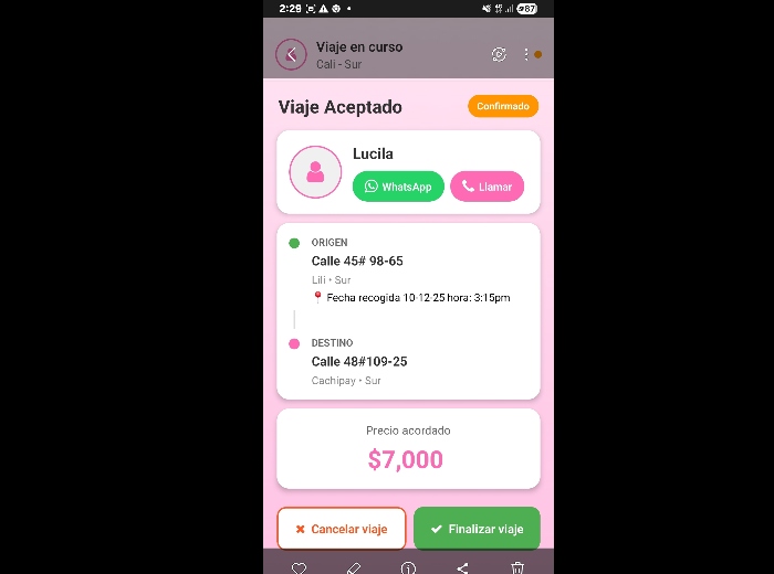 Aplicación de transporte de pasajeros (a), donde solo conducen mujeres en moto, moto-carro y carro. seria reconocida por seguridad, tranquilidad y confianza. actualmente